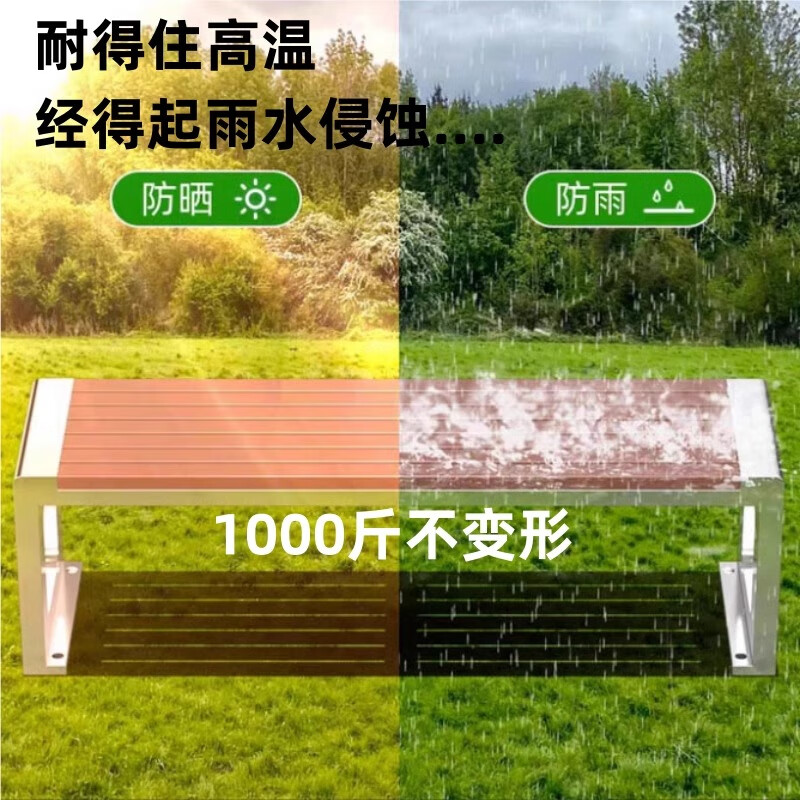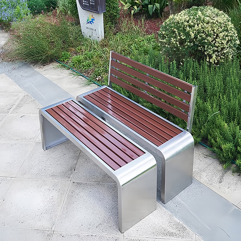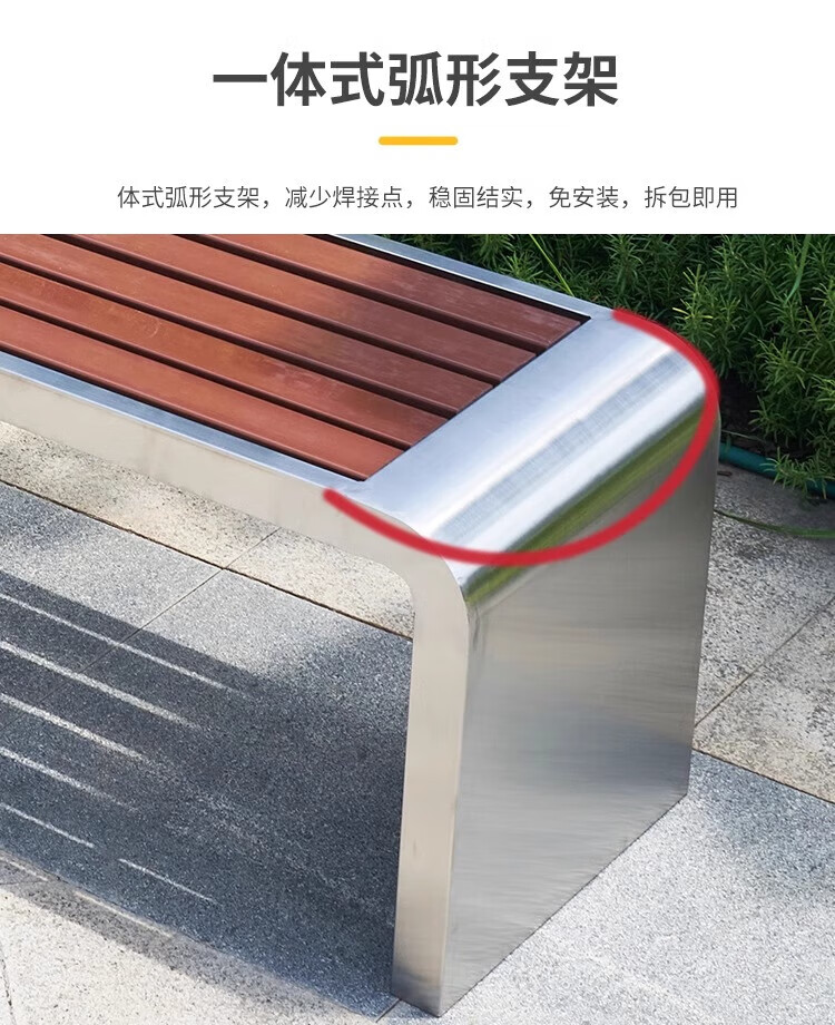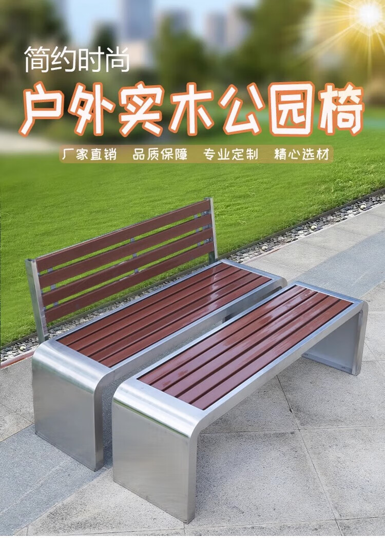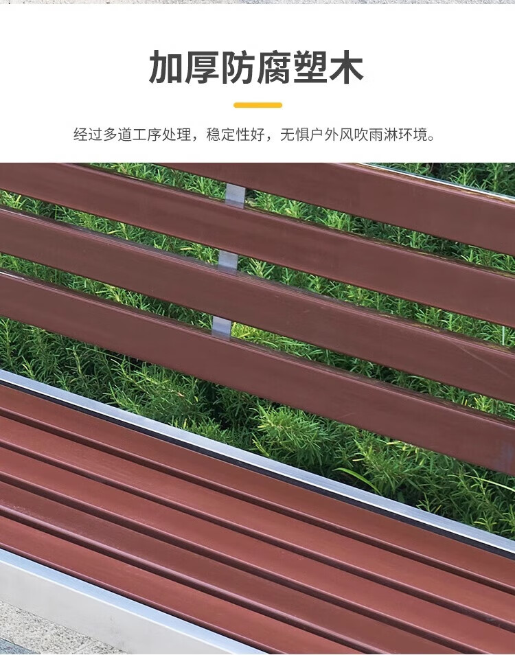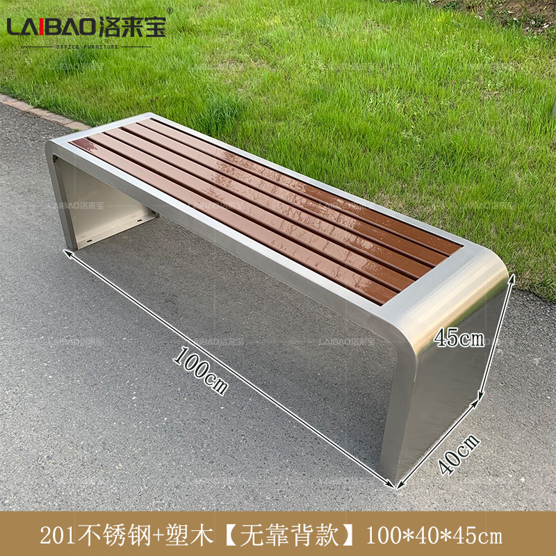 洛来宝公园椅不锈钢户外长凳子室外塑木实木无靠背长条凳 100*40*45CM