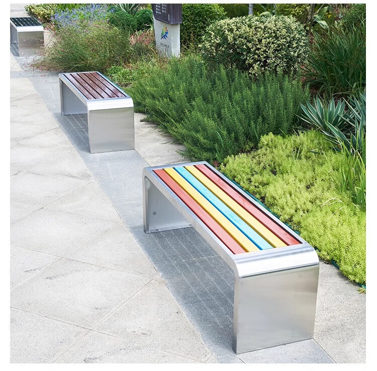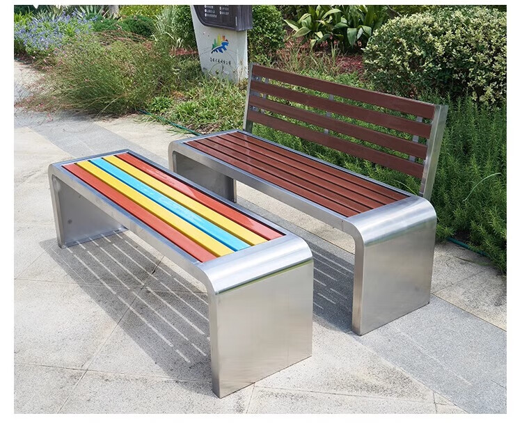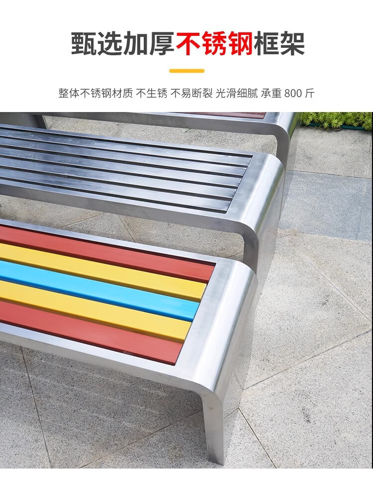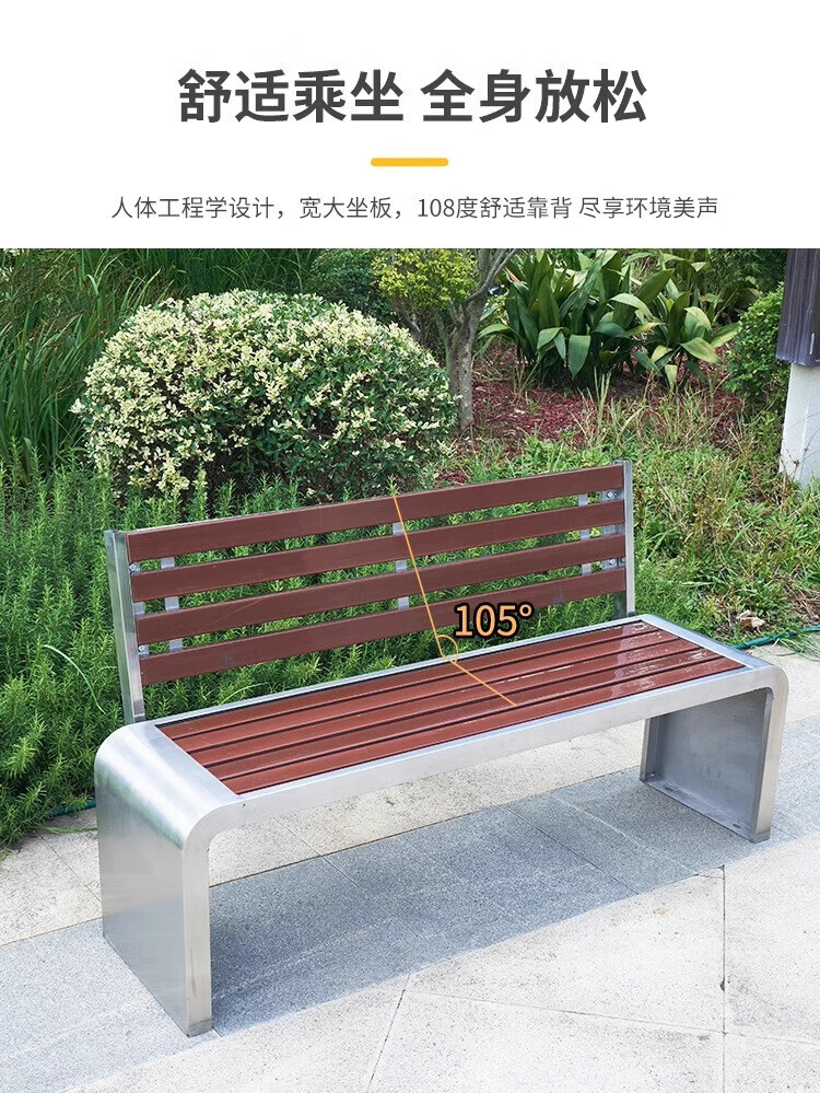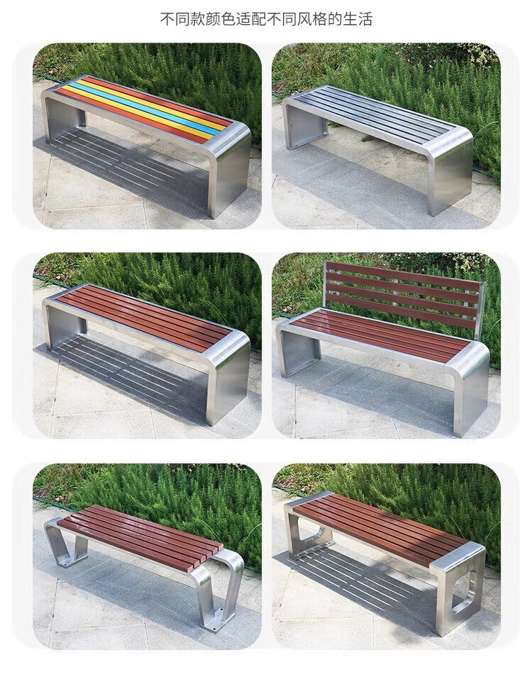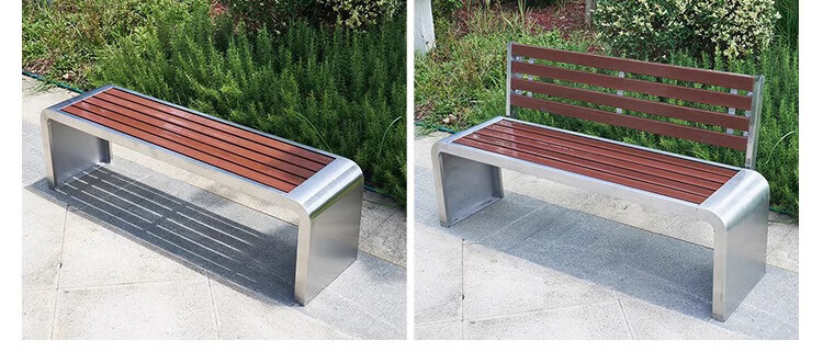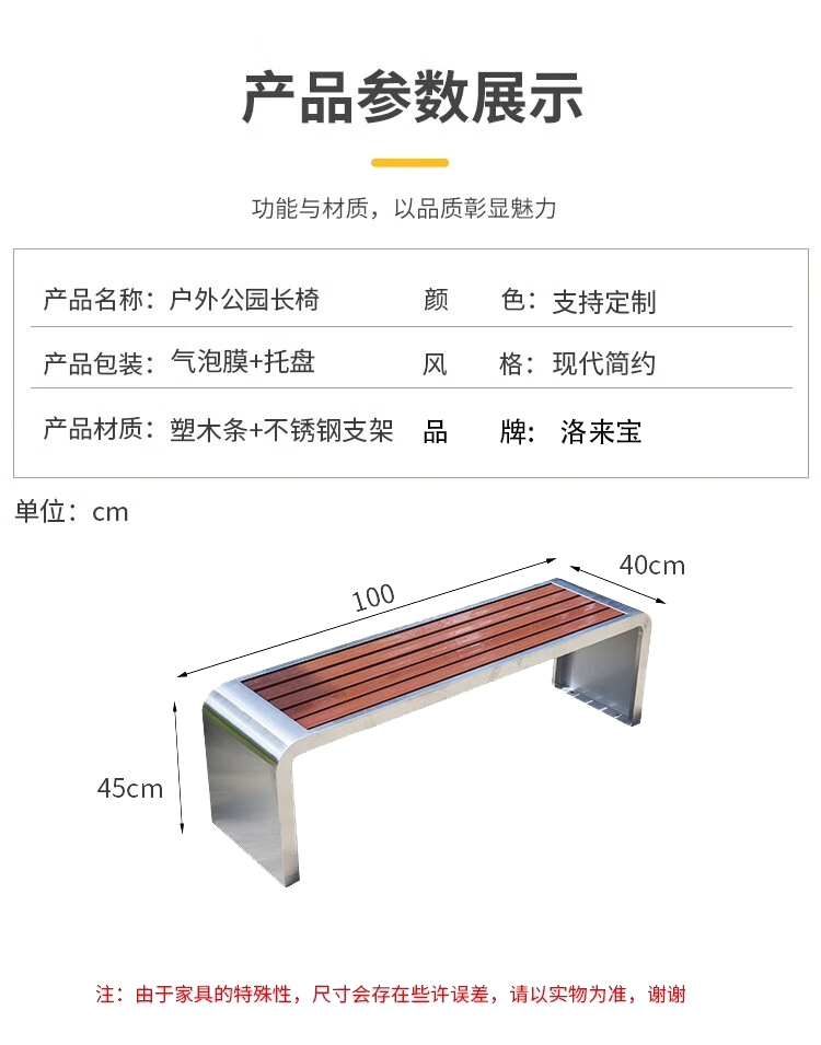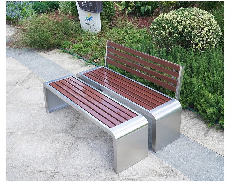 洛来宝公园椅不锈钢户外长凳子室外塑木实木无靠背长条凳 100*40*45CM