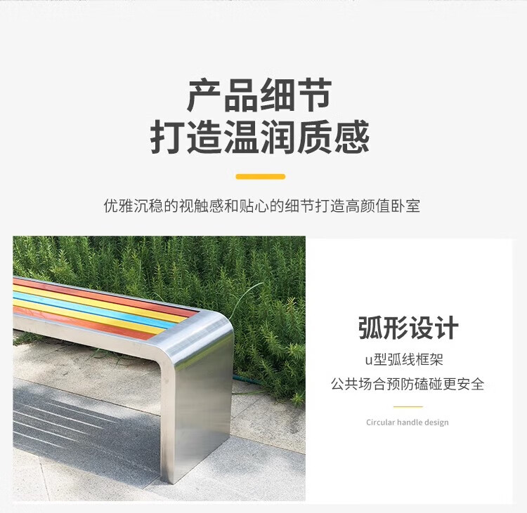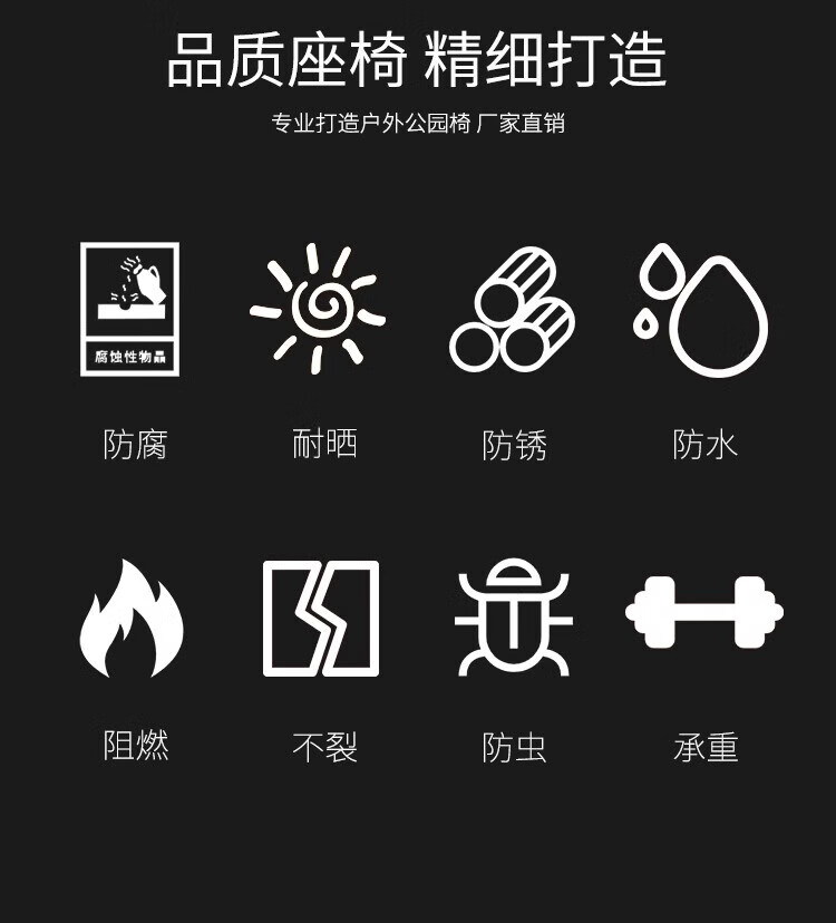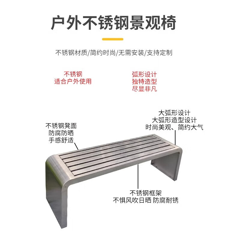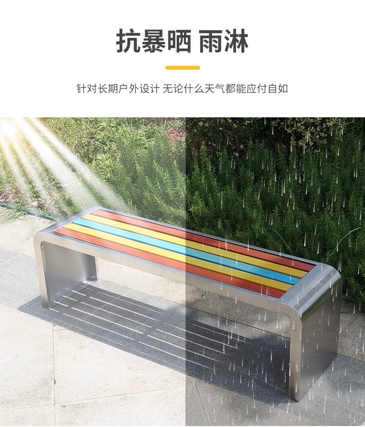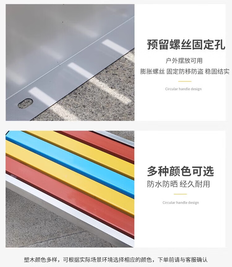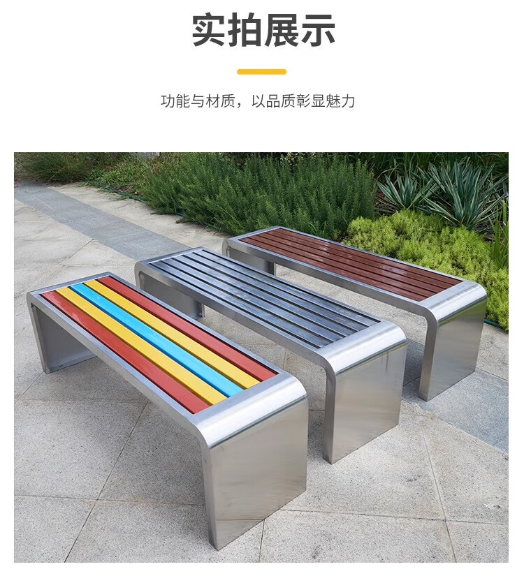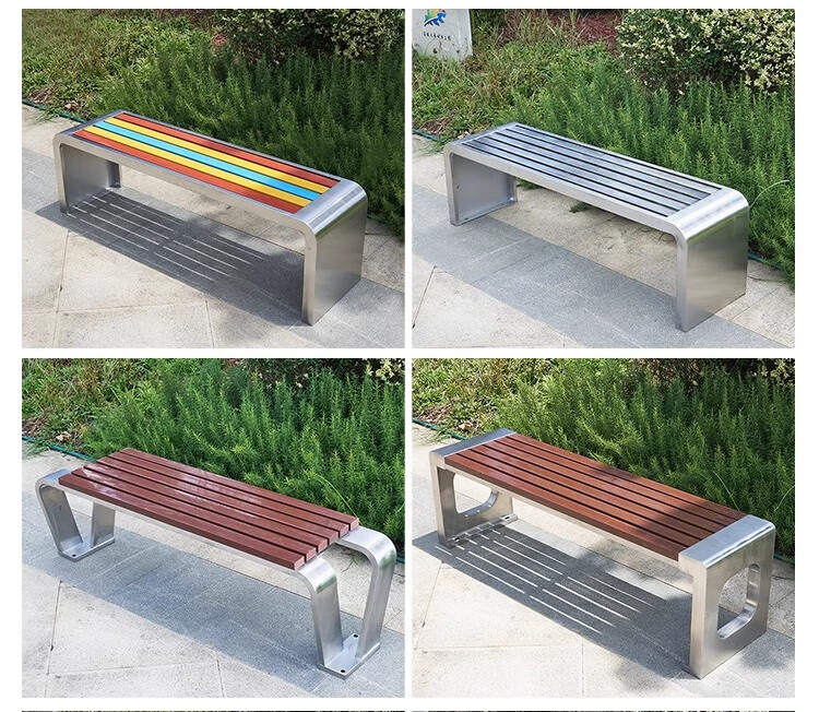 洛来宝公园椅不锈钢户外长凳子室外塑木实木无靠背长条凳 100*40*45CM