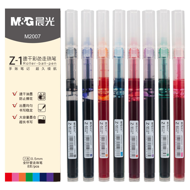 晨光(M&G)文具0.5mm多色 彩色中性笔 Z1速干直液式走珠笔 全针管签字笔水笔 8支/盒 ARPM2007