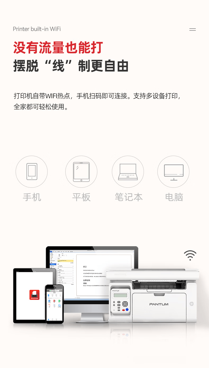 奔图(PANTUM)M6202W青春版 黑白激光学习打印机 复印扫描一体机 手机无线打印机家用+1年保修原厂技术支持