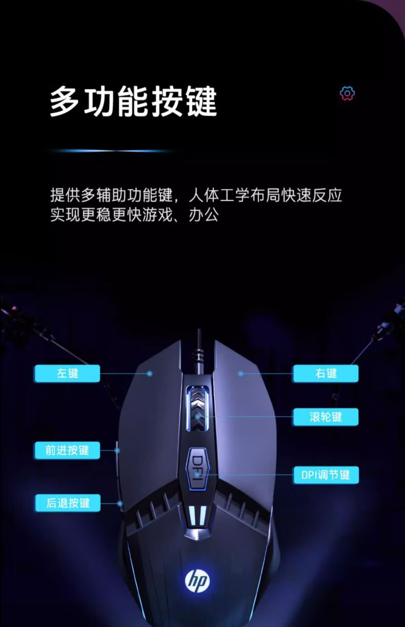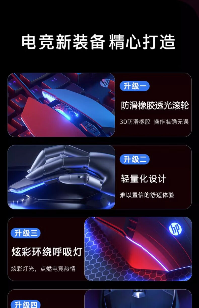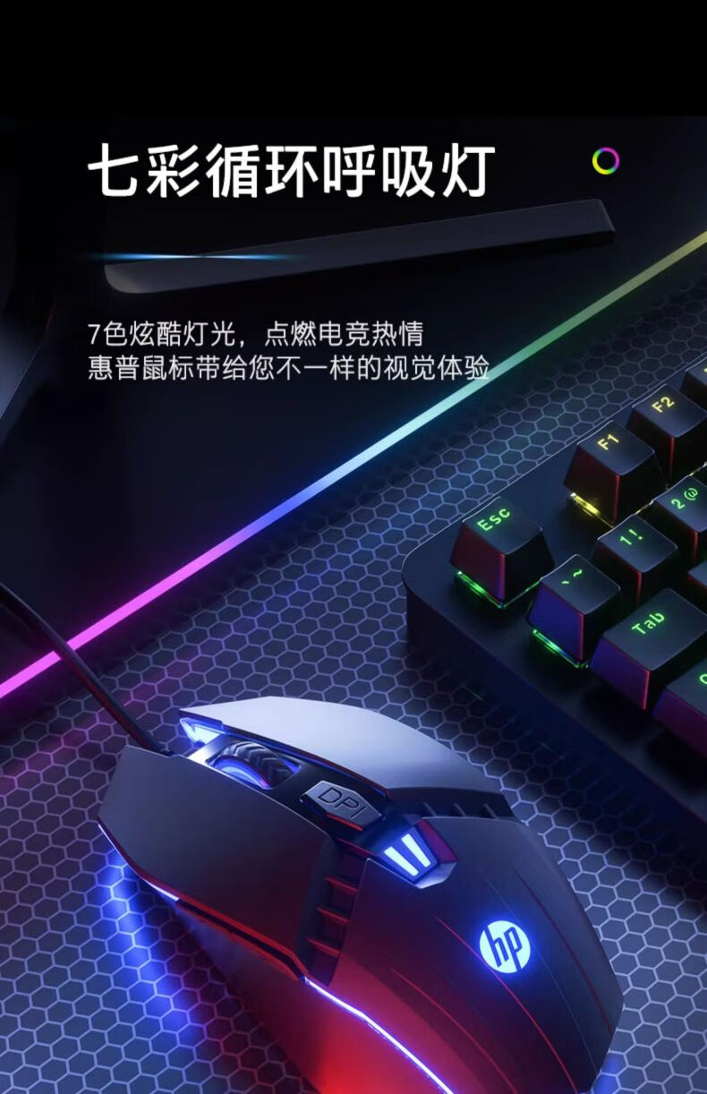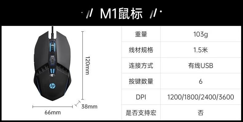 惠普(HP) M1有线游戏鼠标黑色有声版 发光电竞鼠标USB游戏办公台式机电脑笔记本 LOL吃鸡网吧