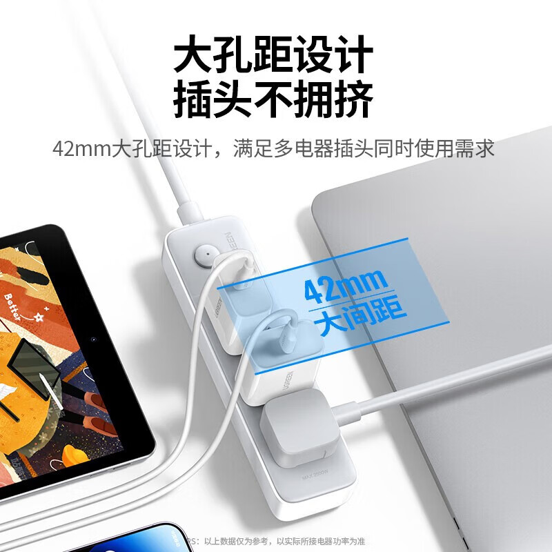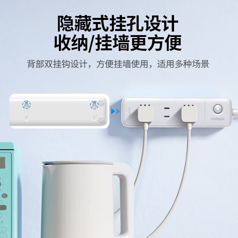 绿联插排/插线板/排插/桌面插座拓展/多功能插座 新国标大间距孔距接线板拖线板宿舍家用办公 【4位总控】五孔,全长0.5米