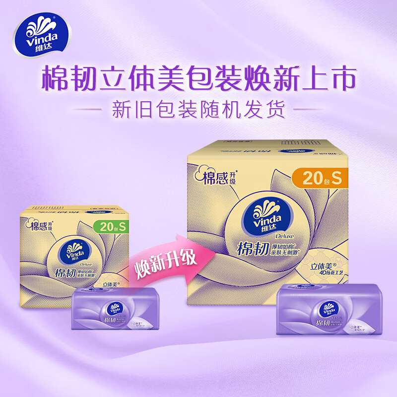 维达(Vinda)抽纸 棉韧3层90抽*20包S码 亲肤无刺激 卫生纸纸巾 餐巾纸 整箱