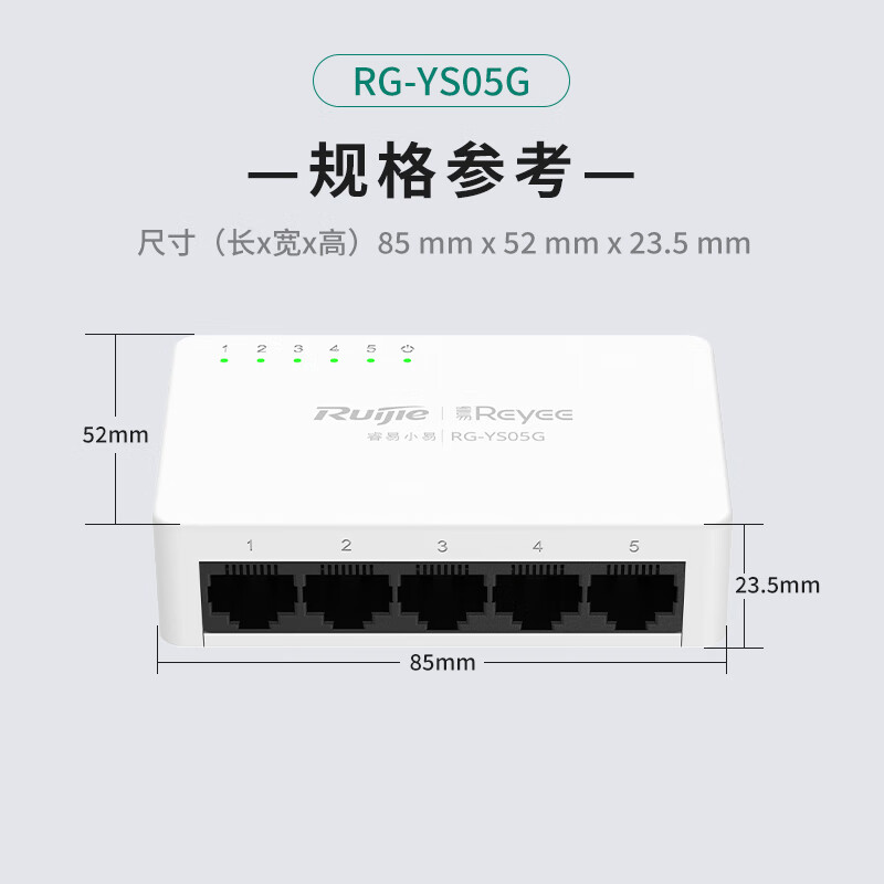 锐捷(Ruijie)5口千兆非网管防雷交换机 RG-YS05G 全线速转发数据稳定即插即用 家用企业宿舍监控交换器分线器